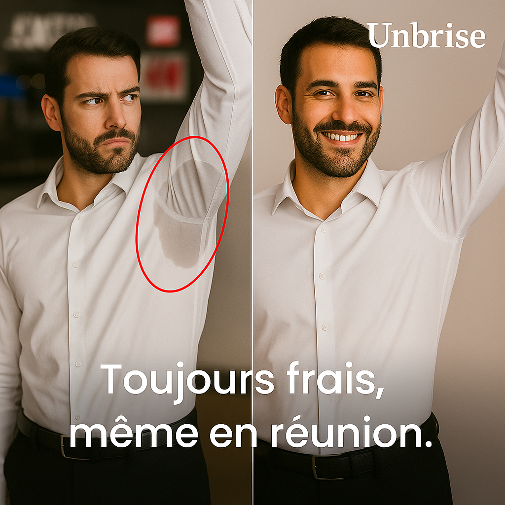 La chemise UNBRISE garde votre corps à la bonne température, un peu comme une climatisation portable, mais sans le bruit ni le câble. Elle respire, évacue la chaleur et garde son sang-froid, même quand vous êtes en retard ou coincé dans l’ascenseur.